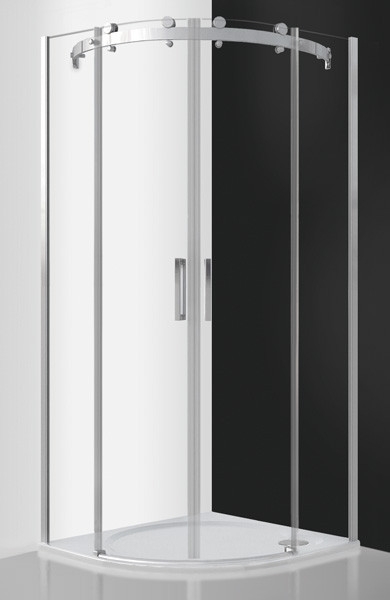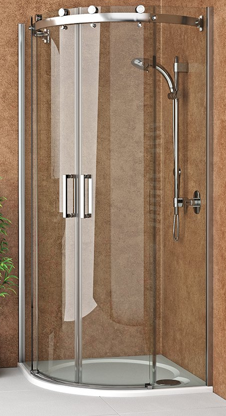 Pusapvalė dušo kabina su dvejomis slankiojančiomis durimis.