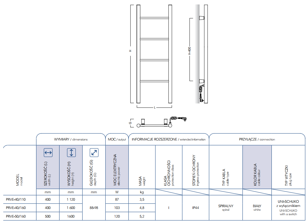 Elektrinis gyvatukas PRIMAVERA, PRVE-40/110C31, juoda mat. sp.