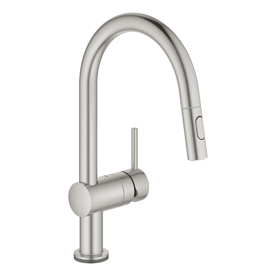 Grohe Minta Touch elektroninis plautuvės maišytuvas, C formos ištraukiamas snapas, nerūdijančio plieno spalva