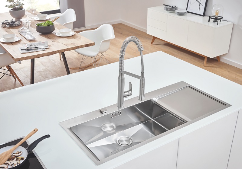 Grohe nerūdijančio plieno plautuvė K1000, dubuo 71 x 40 cm, dubuo kairėje