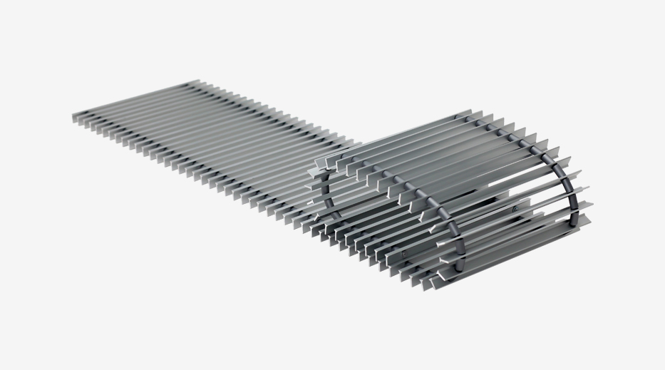 Modernios apdailinės grotelės, pagamintos iš gryno aliuminio, skirtos apsaugoti vidines įleidžiamųjų grindinių konvektorių detales. Jos lengvai atlaiko pakankamai dideles vertikalias apkrovas, todėl per jas leidžiama vaikščioti.