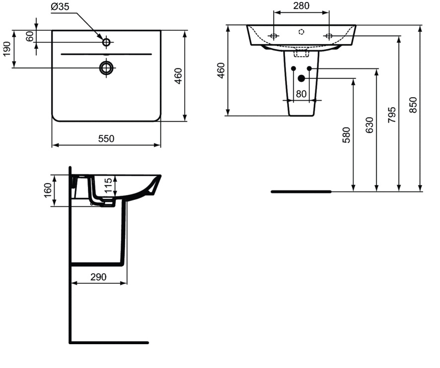 Ideal Standard praustuvas Connect air Cube, tvirtinamas prie sienos, 55 x 46 x 16 cm, baltas