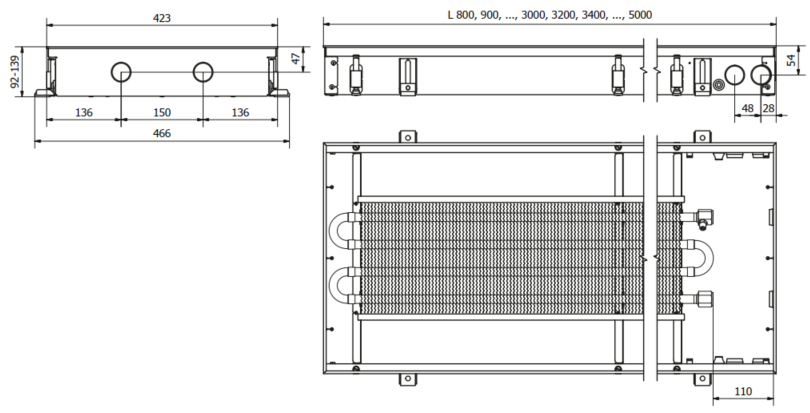 Natūralios konvekcijos įleidžiami grindiniai konvektoriai FC skirti patalpų su vitrininiais langais šildymui. Jų korpusai visiškai paslėpti grindyse, todėl praktiškai nematomi. Vienintelis matomas elementas -uždengiamosios grotelės, kurių medžiaga ir spalva pritaikomi grindų dangai. Konvektoriai montuojami prie pat langų, neleisdami šalčiui, einančiam nuo langų plisti į patalpas. Tuo pačiu jie sukuria šilto oro užuolaidą, užkertančia kelią langų rasojimui net ir šalčiausiomis žiemos naktimis.