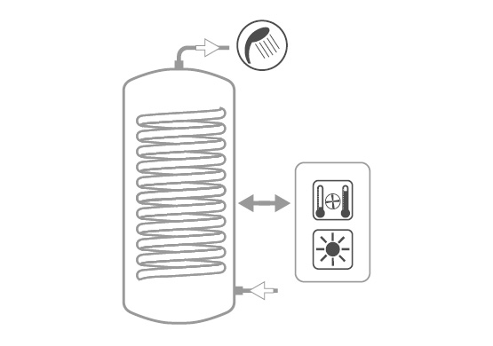 - Karšto vandens šildytuvas, pritaikytas žematemperatūriniams šildymo prietaisams;