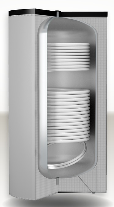Karšto vandens šildytuvas BOLLY 2 AP WB 300 L, su dviem gyvatukais 0,9 ir 1,4 m², kieta izoliacija