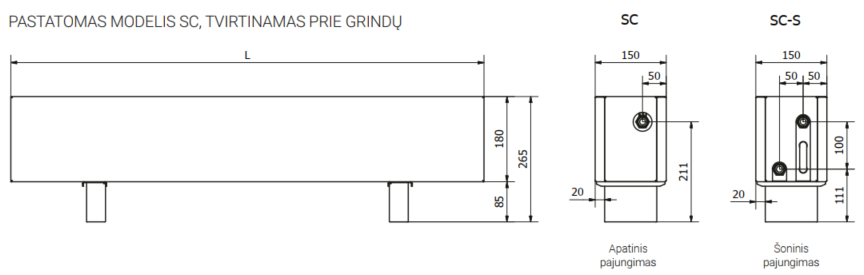 Pastatomas konvektorius SC 170x15x18 (aukštis 26 cm su kojele)