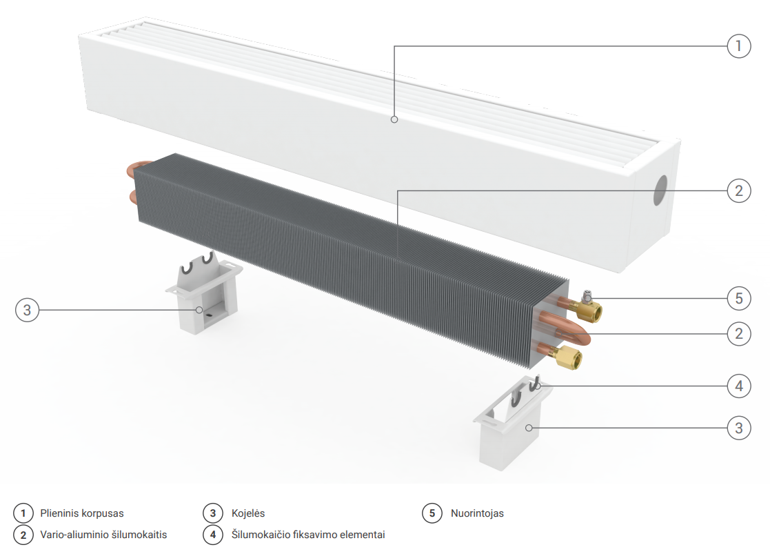 Pastatomas konvektorius SC 180x15x8 (aukštis 14,5 cm su kojele)