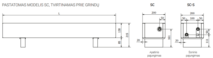 Pastatomas konvektorius SC 180x20x13 (aukštis 21,5 cm su kojele)
