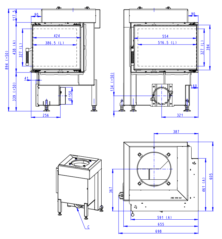 • turi centrinio oro padavimo funkciją – oras degimui gali būti imamas iš kitų patalpų ar lauko, taip židinio patalpoje išlaikant šviežią orą;