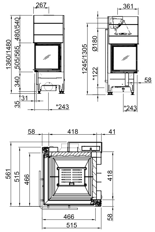 • šilumą kaupianti šerdis iš šamoto degimo kameros temperatūrai pakelti.