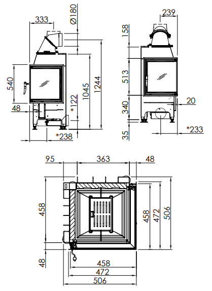 • šilumą kaupianti šerdis iš šamoto degimo kameros temperatūrai pakelti;