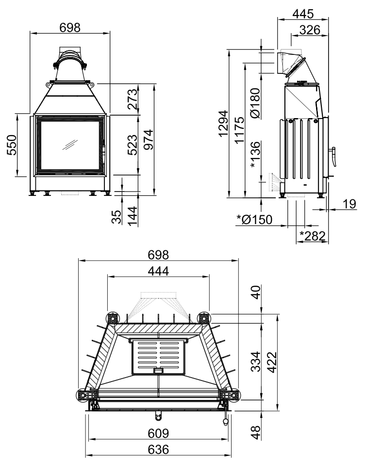 •šilumą kaupianti šerdis iš šamoto degimo kameros temperatūrai pakelti.