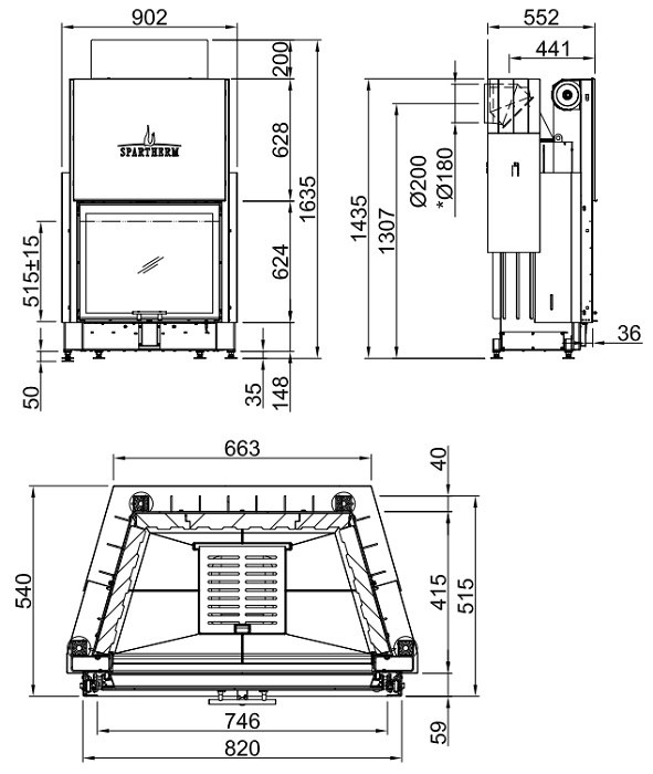 Plieninis židinio ugniakuras Varia S62,3h-4S, tiesiu stiklu ir tonuotais stiklo kraštais, 2023