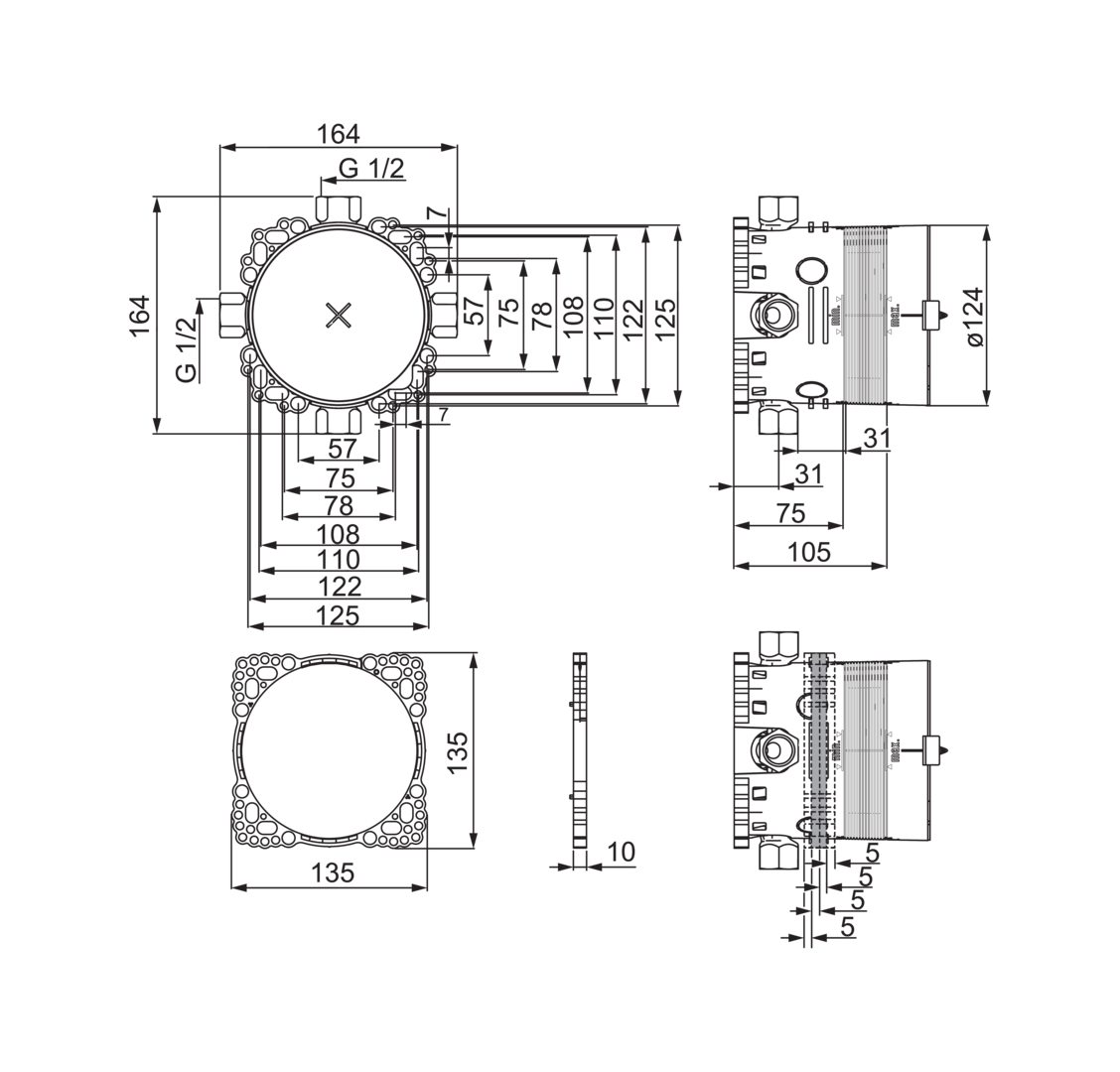 Oras Bluebox sienoje montuojamas vonios ir dušo korpusas, G 1/2. Naudojama su 6610C, 6611C, 6612C, 6613C, 6614C, 6615C, 6616C, 6617C, 2077, 2078, 2088, 2089, 2097, 2098, 3887, 3887B, 3888, 3888B, 1044C, 1064C, 3987, 3988