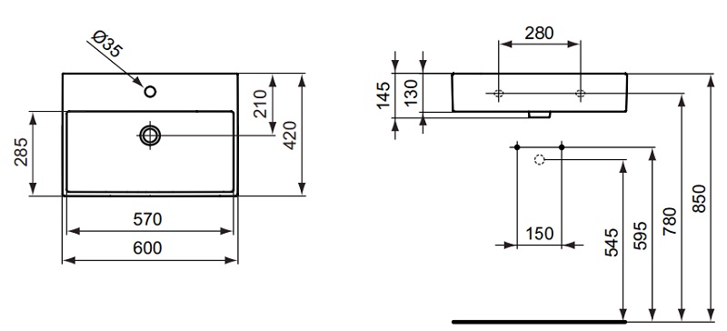 Praustuvas Ideal Standard Strada 60 cm, su perlaja