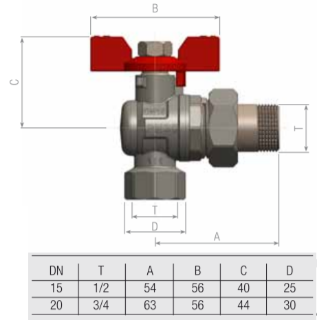 SENA kampinis ventilis su išard. jungtimi 3/4″ v/i trumpa rankena